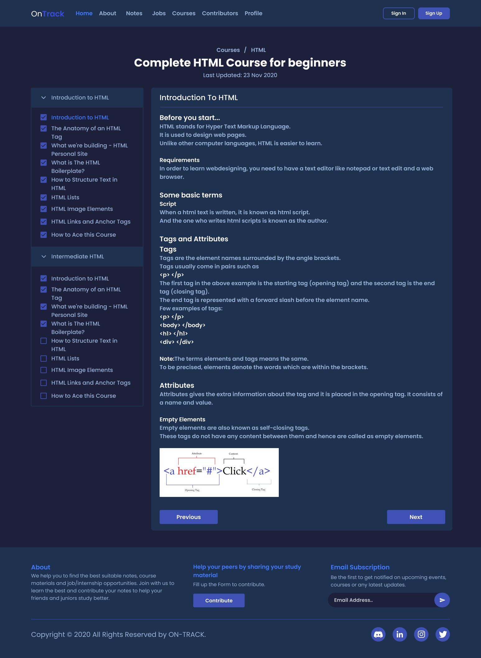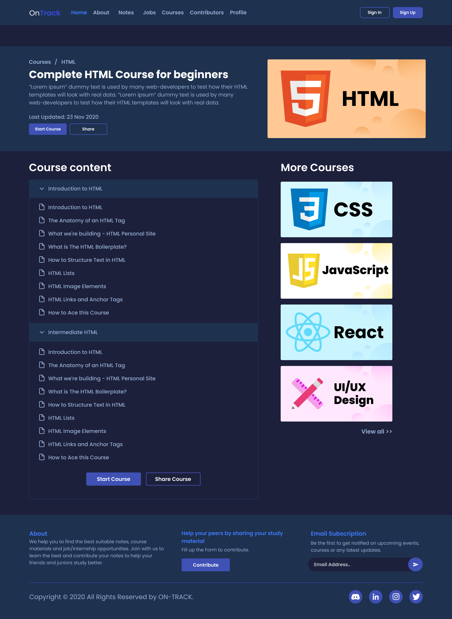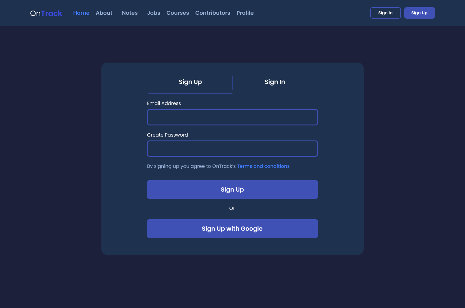 Ontrack is a web app that helps you to find the best suitable notes, course materials and job/internship opportunities. Join with us to learn the best and contribute your notes to help your friends and juniors study better.